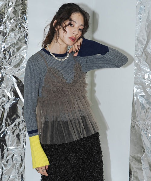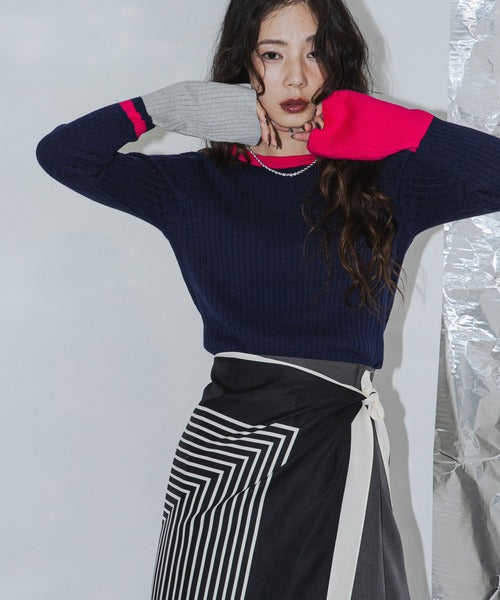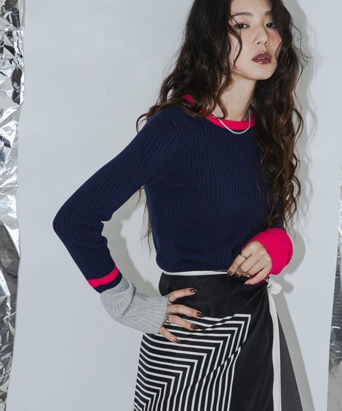 This ultra-comfortable two-tone sweater is now available in the 25-26 AW colorway.