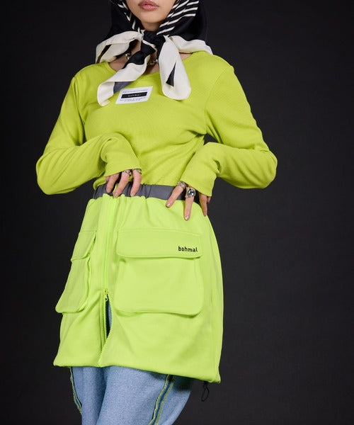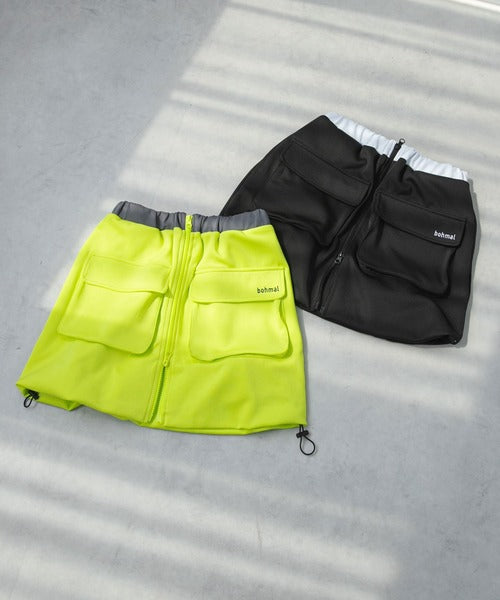 フラップと立体ポケットがポイントのオリジナル刺繍バルーンミニスカート