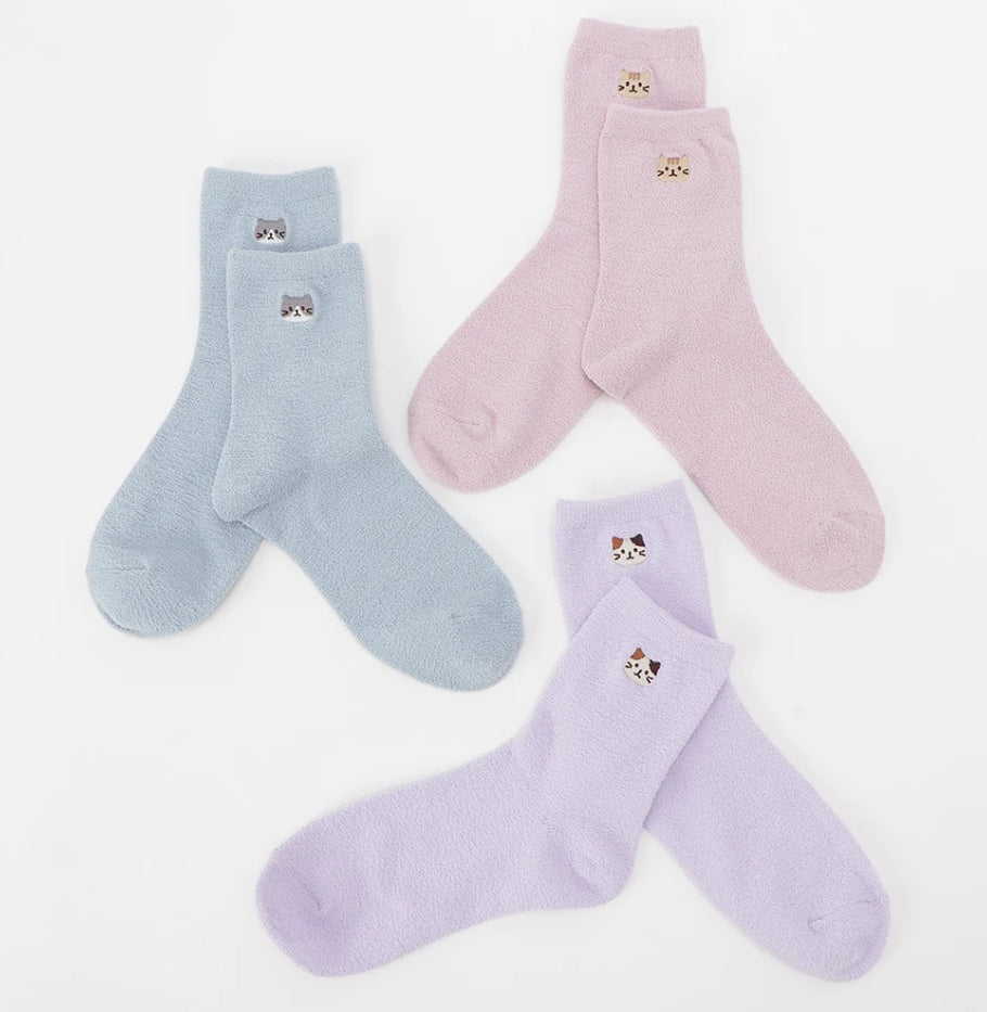 柔らかな色合いに、小さな猫の刺繍がアクセント。快適な着心地と、可愛らしく温かみのある見た目で、毎日のお気に入りになりそうです。