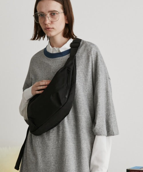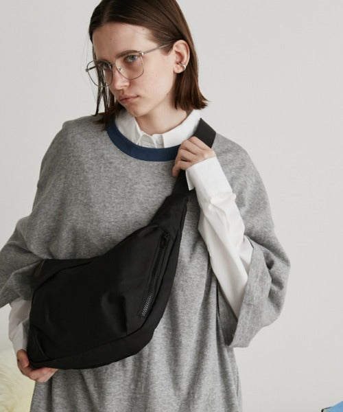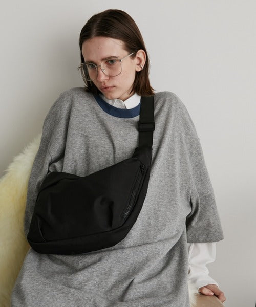 ハーフムーンショルダーバッグ、ユニセックス、サイドポケット付き