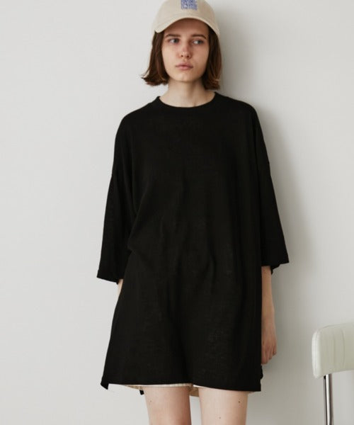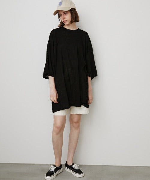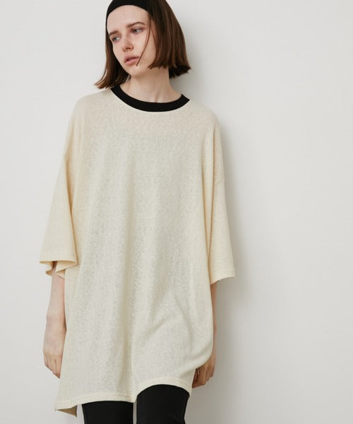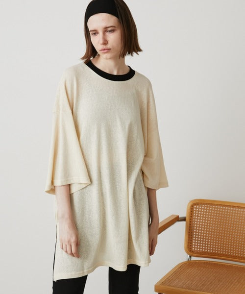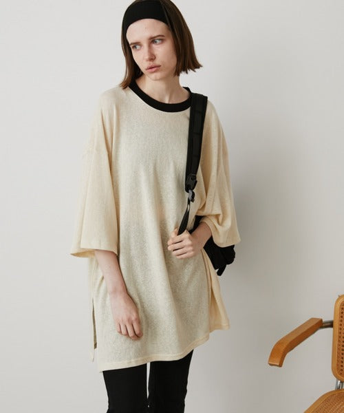 このTシャツは透け感のある素材で作られており、ゆったりとしたシルエットでカジュアルな印象です。