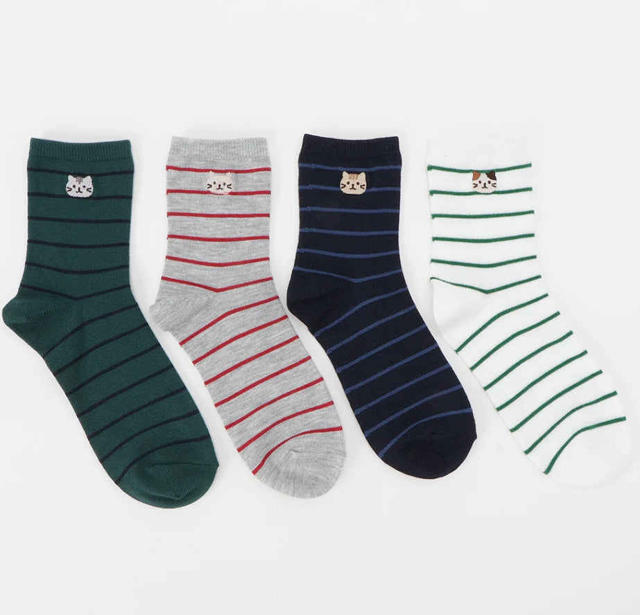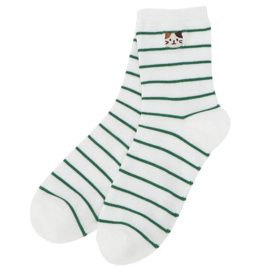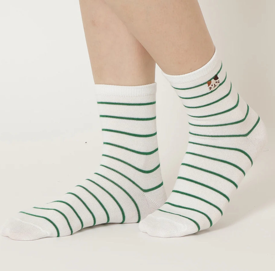 ふくふくにゃんこピンストライプ刺繍ソックス