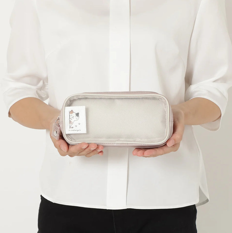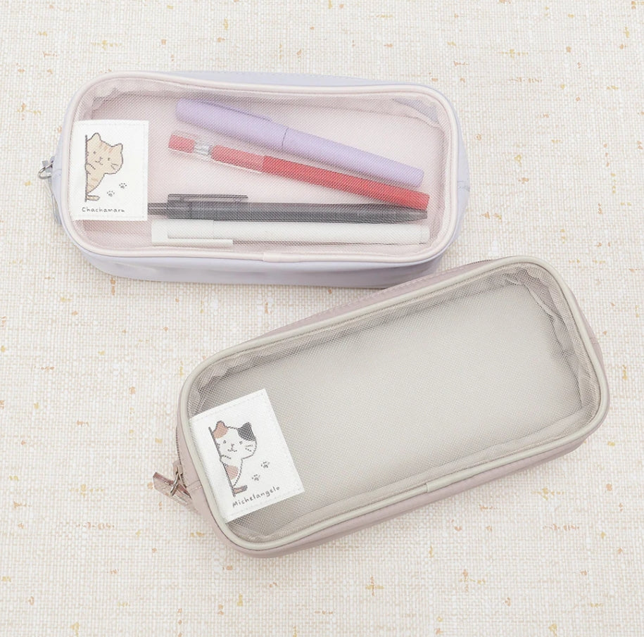 【メッシュの見える収納】Fufu Catペンケース | 文房具や化粧品を収納できる二重構造