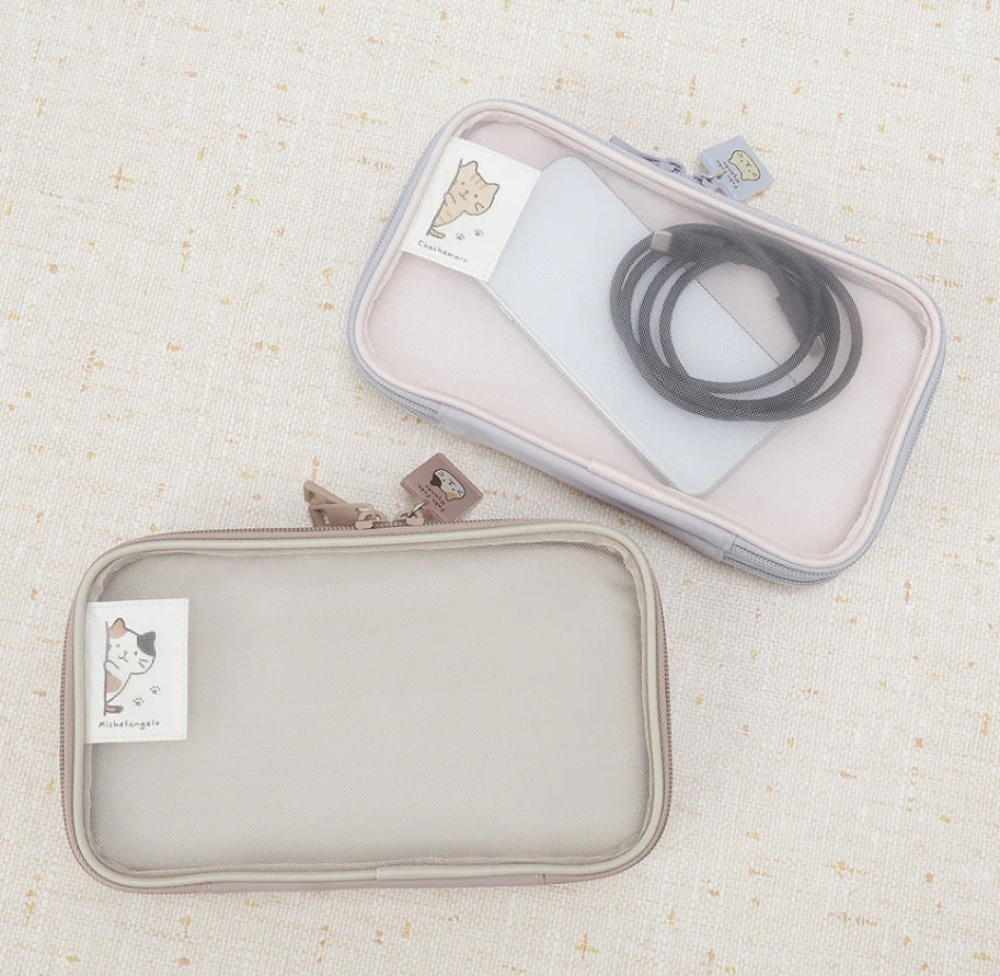 【メッシュデザイン、クリアな視界】Fufu Cat 小型工具収納バッグ | ダブル収納、男女兼用