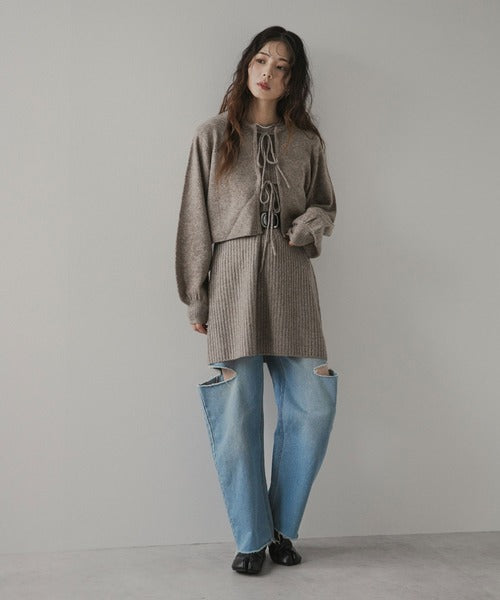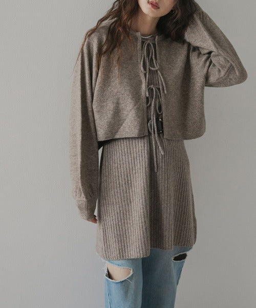 針織洋裝×開襟衫兩件套