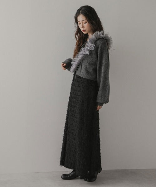 膝蓋以上的長度恰到好處地露出肌膚,為厚重的秋冬風格增添了一絲輕盈感。
