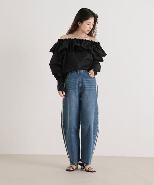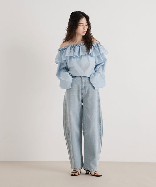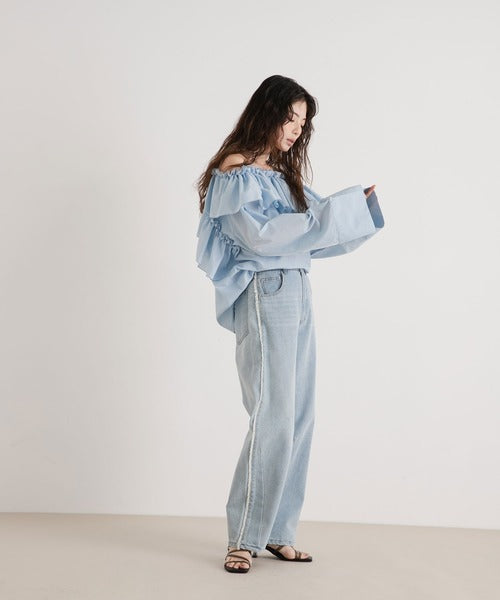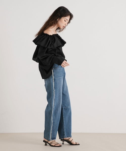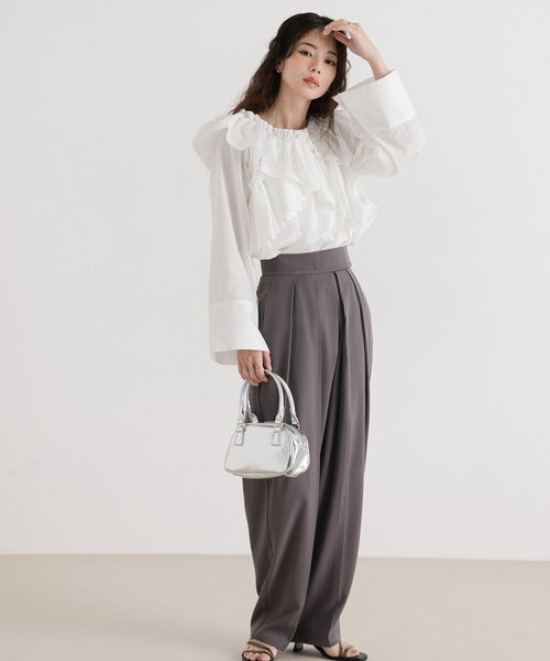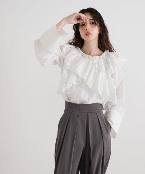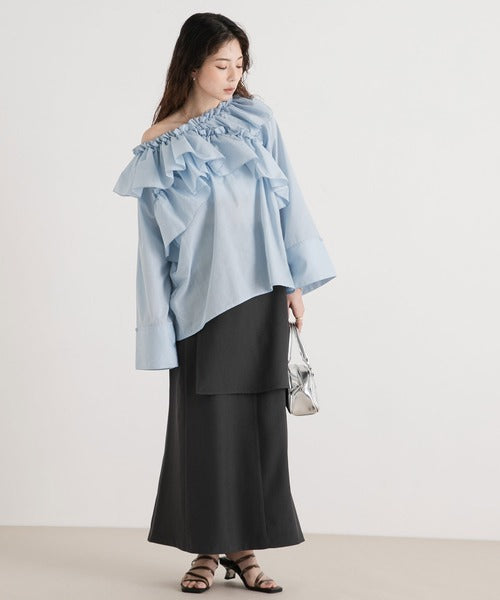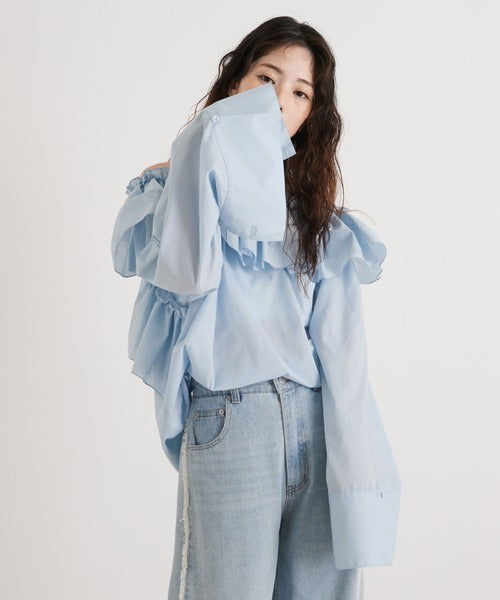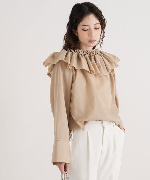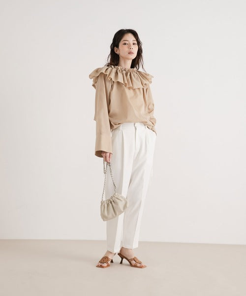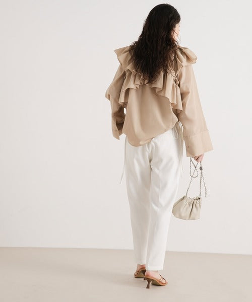 柔軟的褶邊設計巧妙地遮蓋了您的肩膀和上臂。