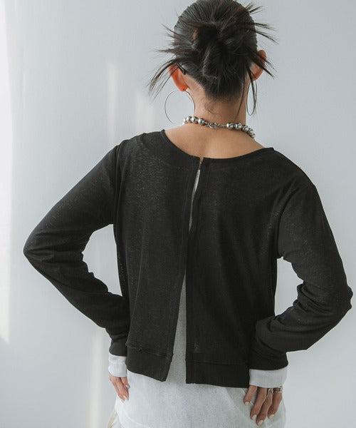 可以當作套頭衫/開襟衫穿著,前面或後面都可以。