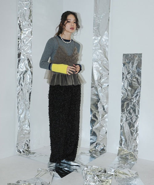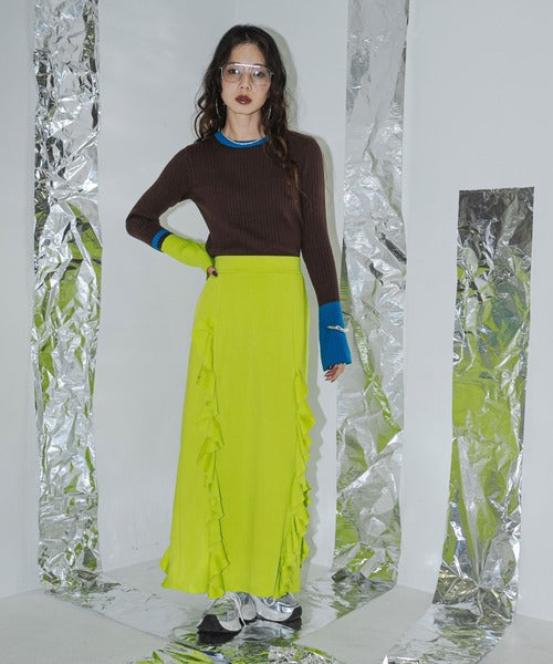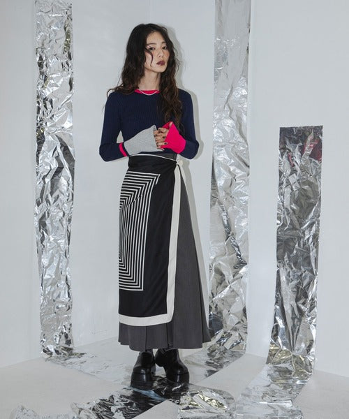 喇叭袖為雙色,並在線條和下擺處添加了顏色。