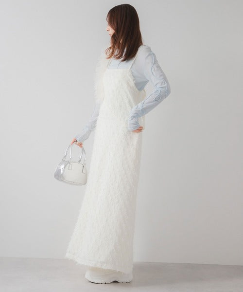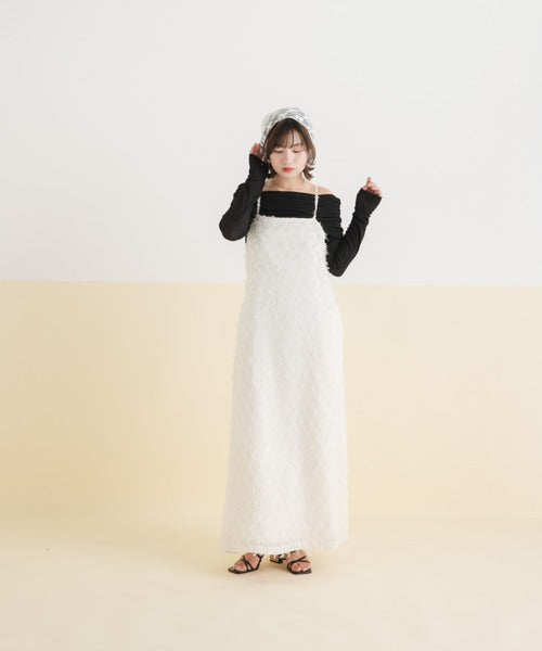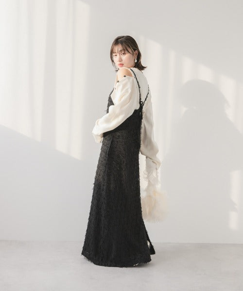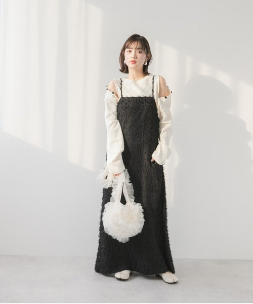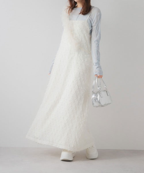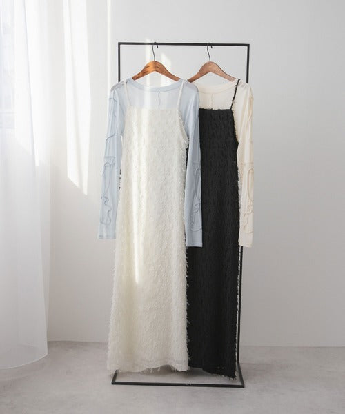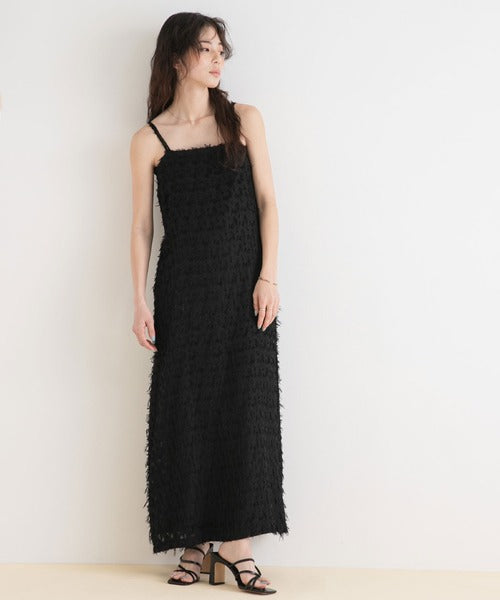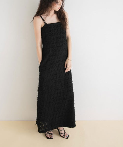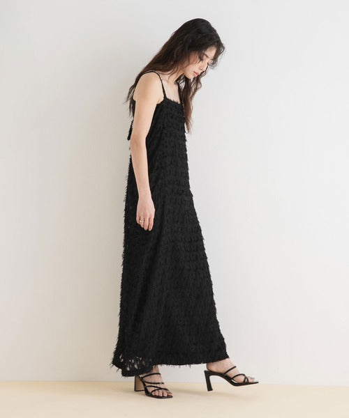 採用流蘇提花材質製成的精緻吊帶連身裙