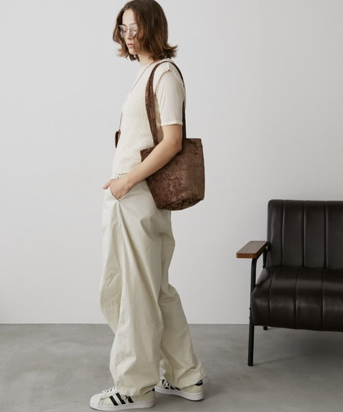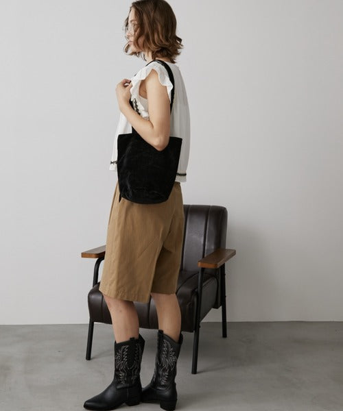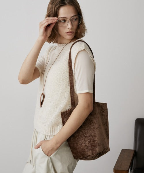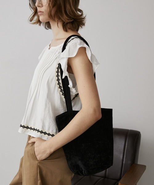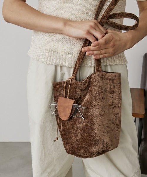 以輕盈柔軟的燈芯絨材質製成的水桶包