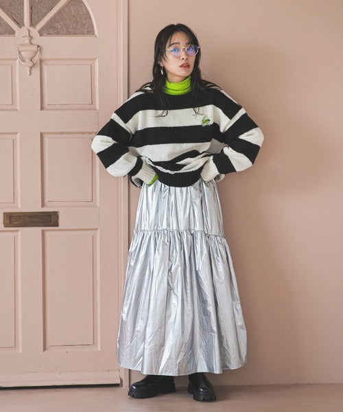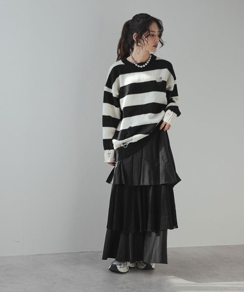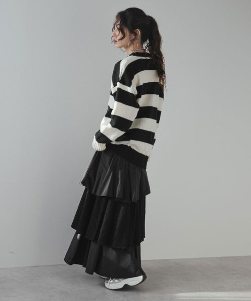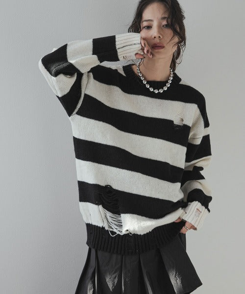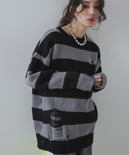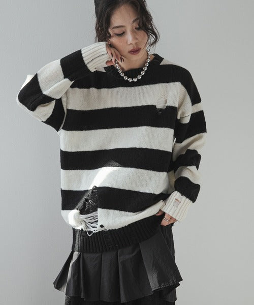 粗條紋破洞針織