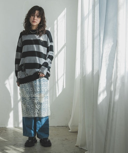 前衛粗條紋破洞針織