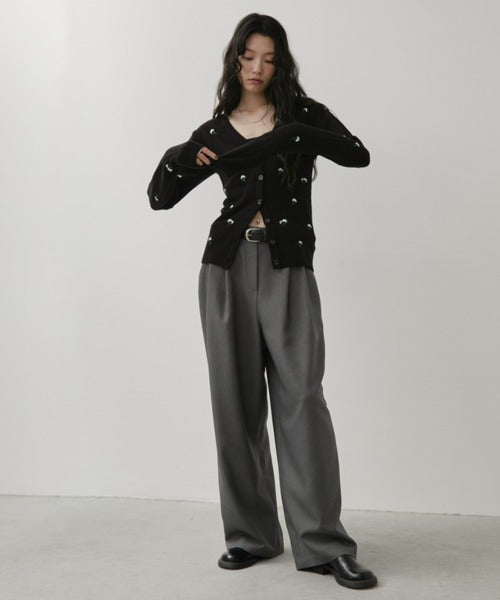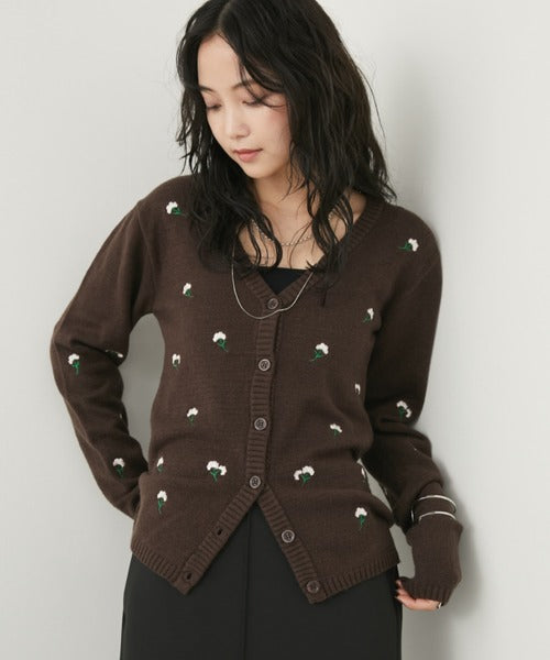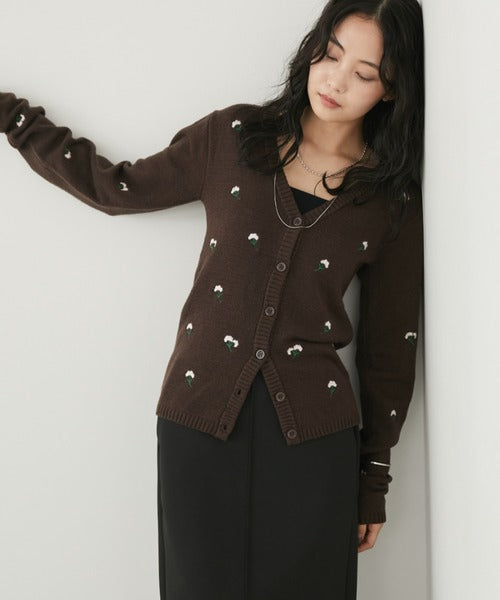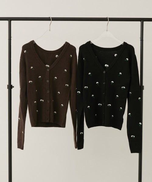 一件 V 領開襟衫,上面鑲滿了精緻的花卉刺繡。