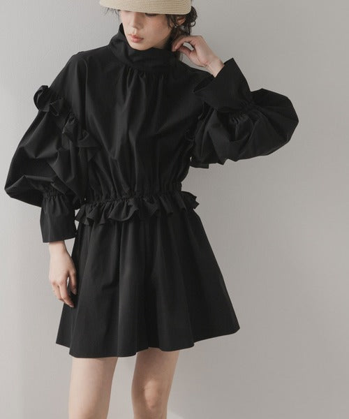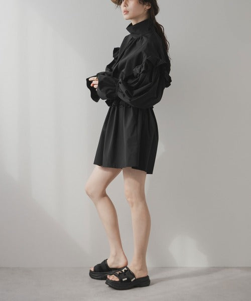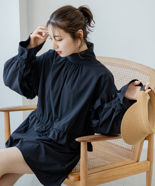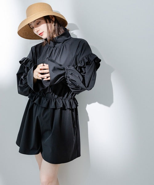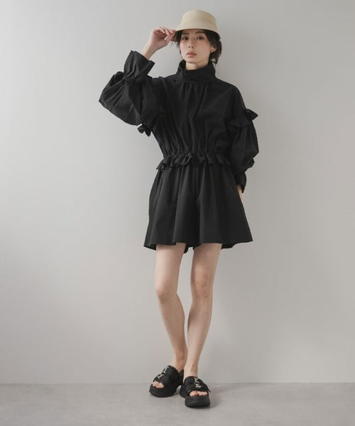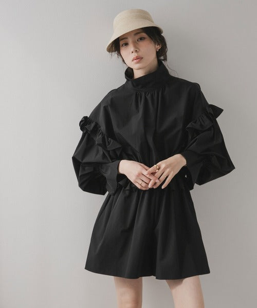 肩膀、袖口和腰部均有褶邊,看起來甜美又可愛。