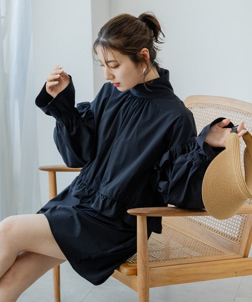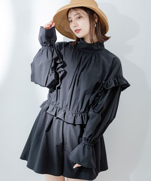 襯衫式的高領和褶皺設計,營造出優雅的印象。它還能完全覆蓋頸部,提供出色的防曬效果。