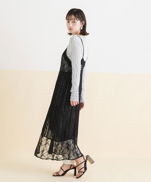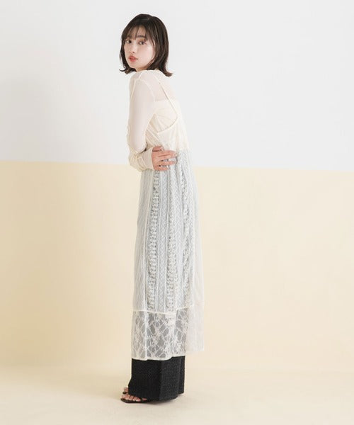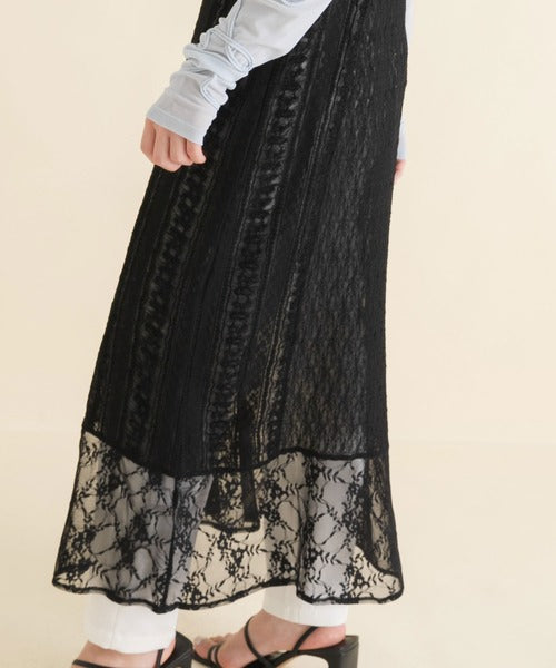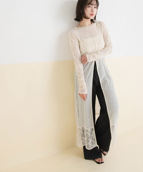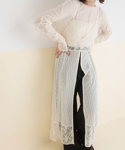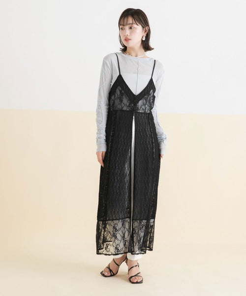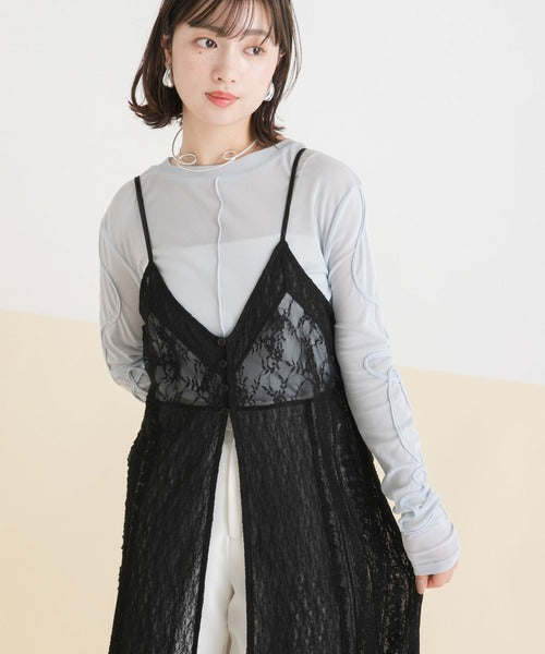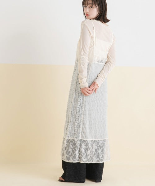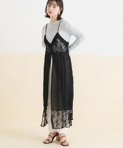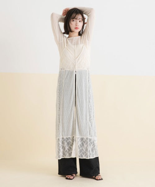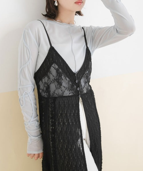 精緻的吊帶背心裙,將流行的透明和蕾絲材質以拼布風格結合在一起!