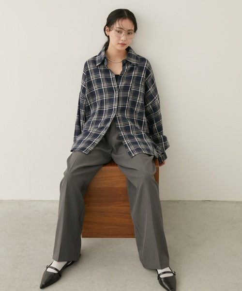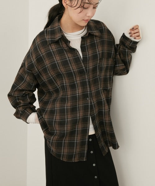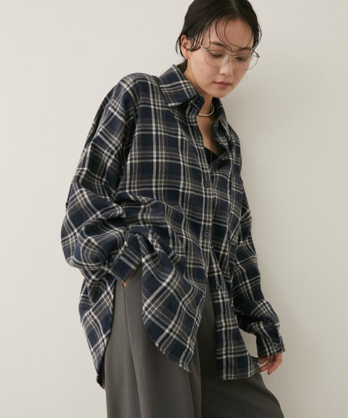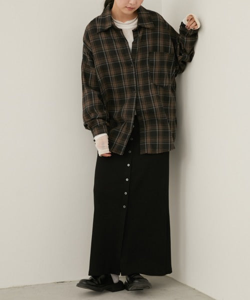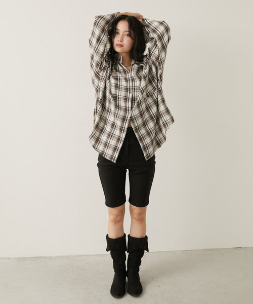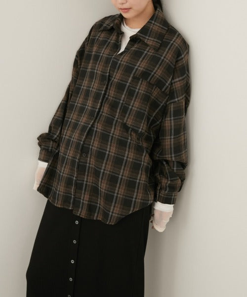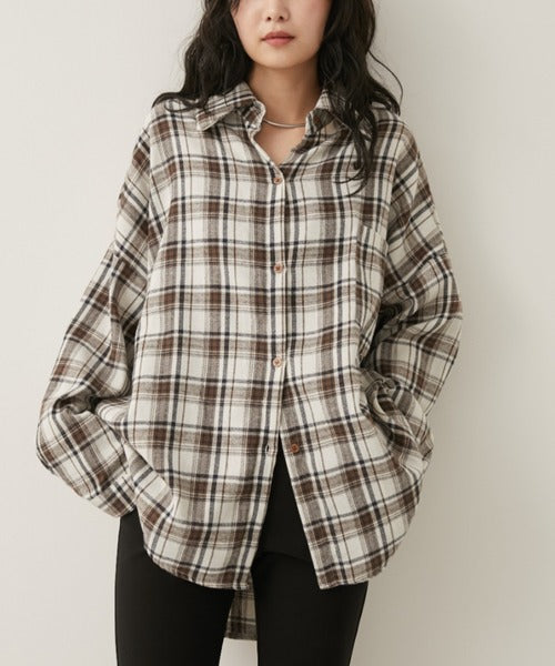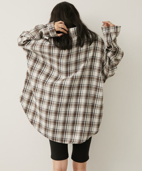 超大寬鬆格紋襯衫