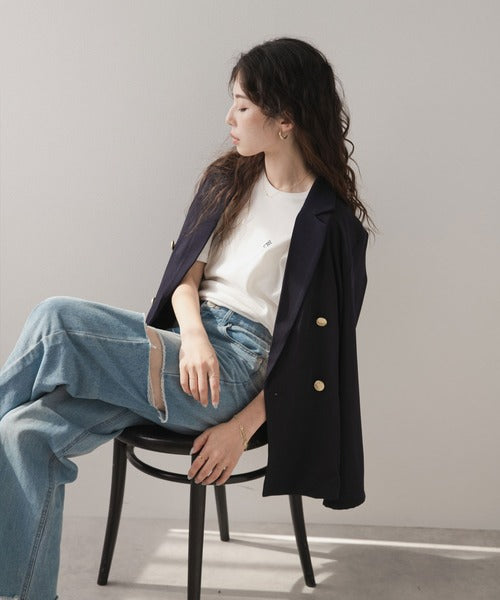搭配休閒牛仔褲,打造精緻造型。