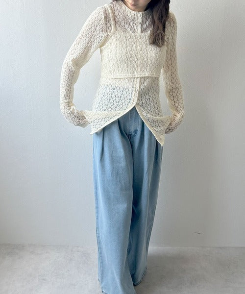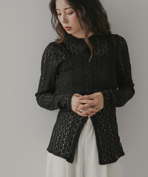 透明蕾絲和緊身胸衣設計賦予這款上衣時尚、女性化和精緻的外觀。