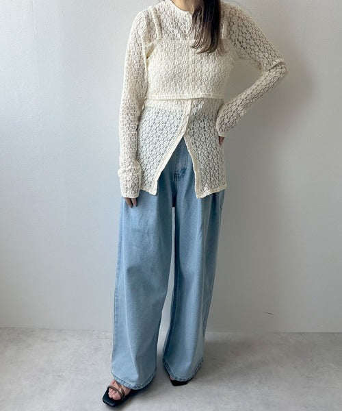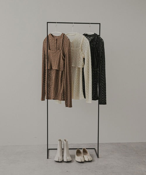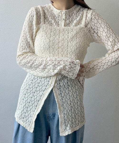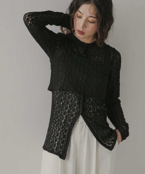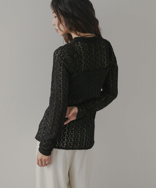兩件式上衣套裝,包括精緻的透明蕾絲設計和由相同材質製成的立體緊身胸衣!