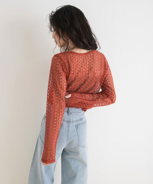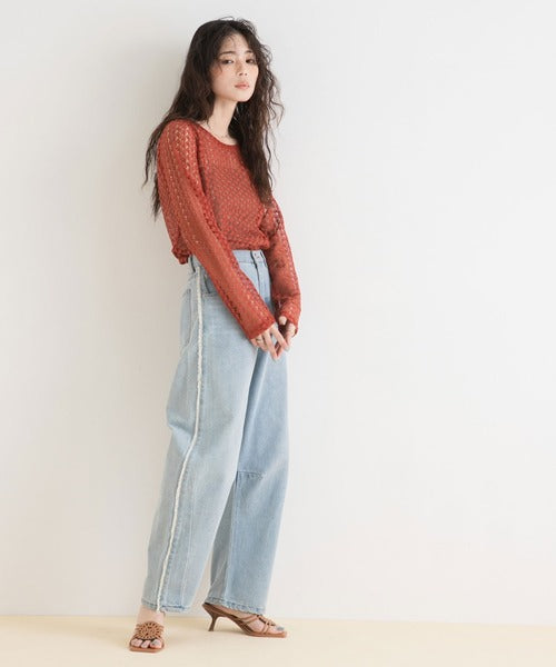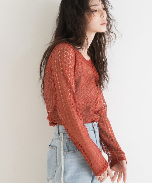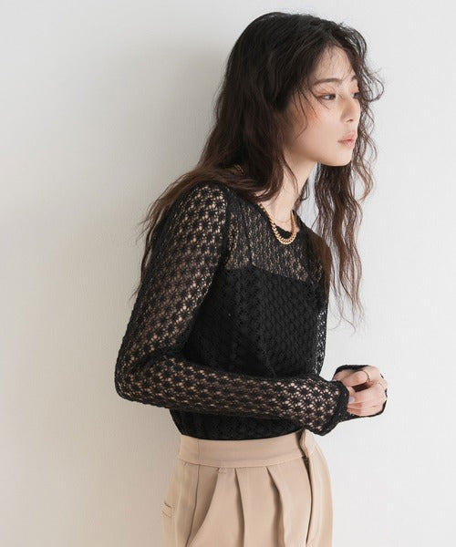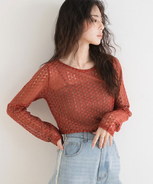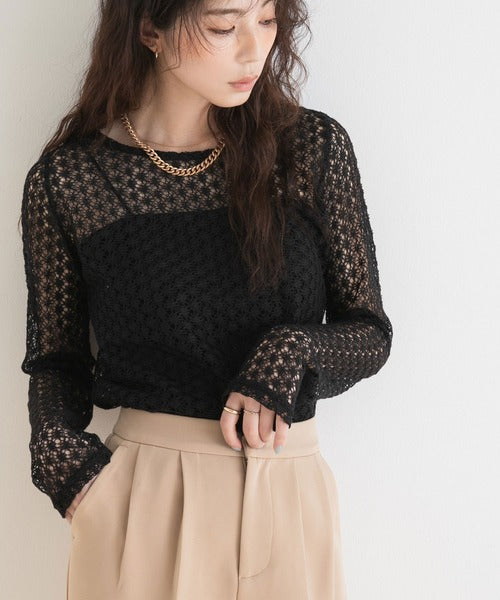 使其非常適合長期穿著,具體取決於您的搭配方式。 ◎ 這件衣服可以搭配各種風格! [材質] 採用精緻透氣的布料製成。 [搭配] 搭配褲子或裙子,最大限度地發揮這款上衣的透視感。